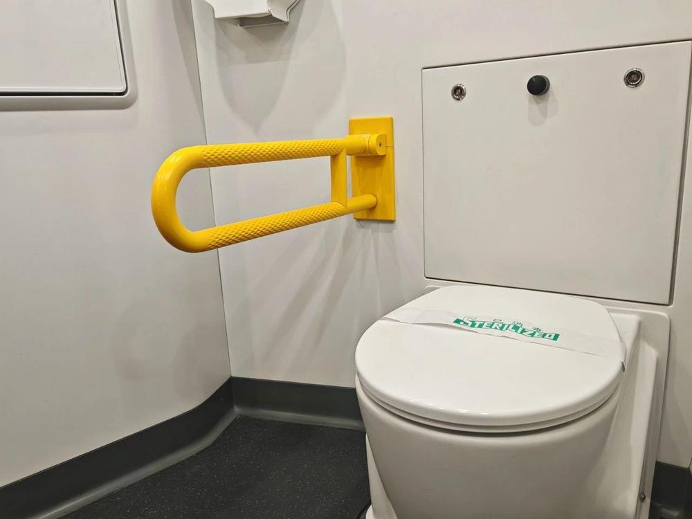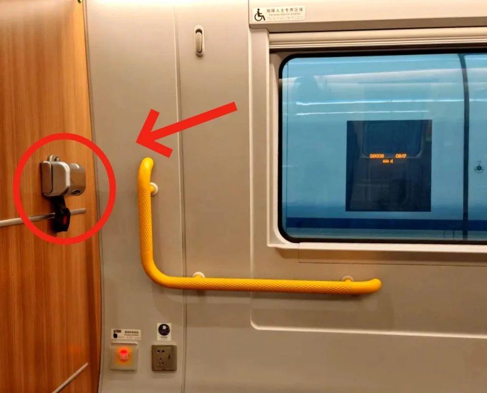 轮椅固定绑带设置在无障碍车厢残疾人专用座席旁,便利使用轮椅的旅客安全寄存轮椅。