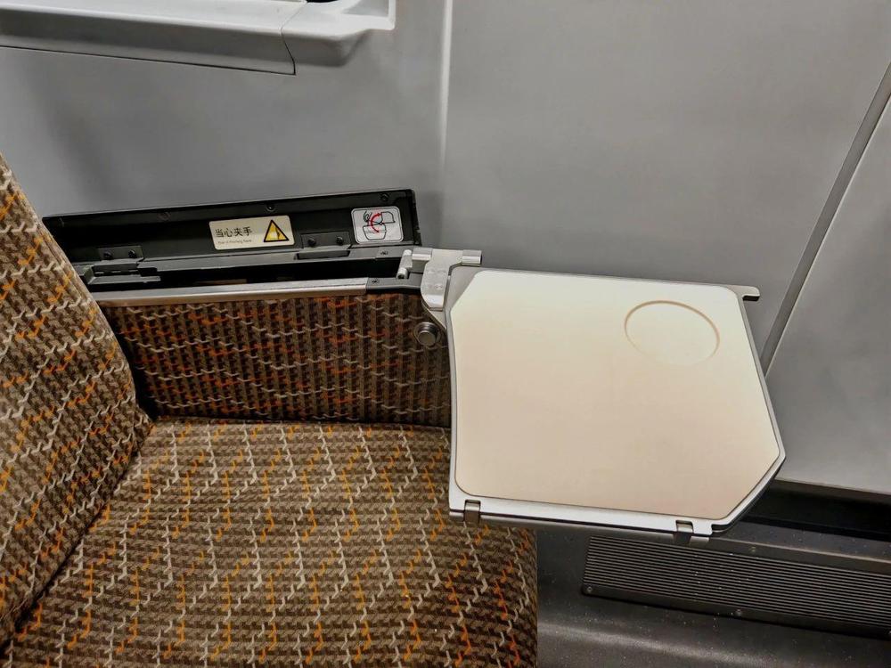 座椅前方的小桌板可放置餐食、水杯、电脑等物品,桌板会标明承载分量。请注意别将过重物品或大件行李放置在小桌板上,避免形成设备损坏。